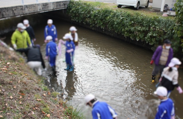 11月13日(木)3・4年生が参加し、「矢原堰クリーニング大作戦」を実施しました。この活動は、矢原堰の清掃や環境整備に参加し、地域の堰を知り、地域の方とともに活動することの大切さを実感することをねらいとしています。当日は、矢原堰土地改良区の皆様にご協力いただき、10名以上の方々が児童の活動をサポートしてくださいました。活動前の「はじめの会」では、改良区の方の紹介や、活動の仕方についての連絡が行われました。各学級には改良区の方が付き添い、安全に配慮しながら清掃活動が進められました。児童たちは長靴を履き、堰内に降りて熱心にゴミ拾いを行いました。活動では、「空き缶」や「昔の携帯」など、色々な種類のゴミを収集しました。拾ったゴミは軽トラックで回収するため橋の近くにまとめられました。軽トラックにいっぱいのゴミが集められました。児童は「思っていたより、たくさんごみがひろえて楽しかった」感想を話してくれました。この矢原堰クリーニング大作戦を通じて、堰の役割を知るとともに、地域の方々がこの堰を大切に守ってきたことを学ぶ貴重な機会となりました。