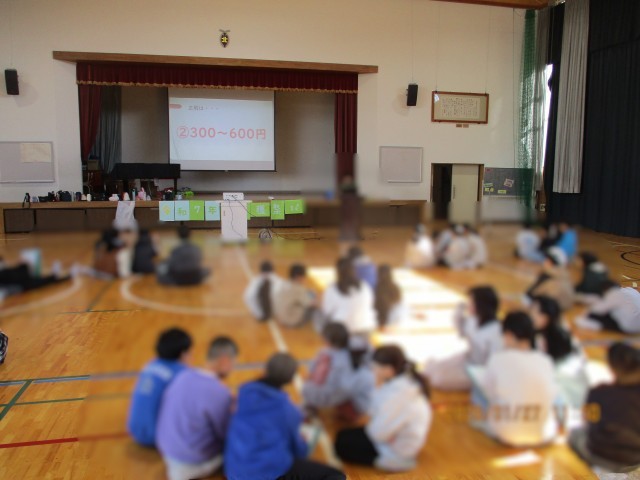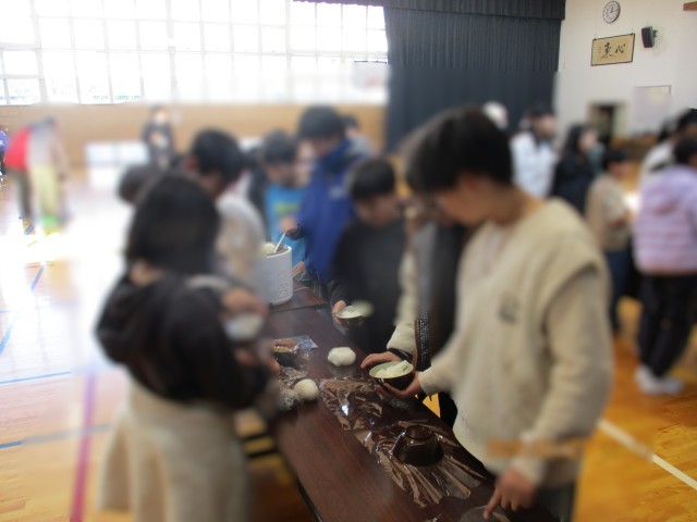 1月27日(火)、5年生は1年間お世話になった*「踏入ゆい生産組合」の皆様をお招きし、収穫祭を行いました。前半は、趣向を凝らした「お米クイズラリー」です。自分たちや先生方に協力してもらったクイズを校舎のあちこちに掲示し、グループごとに挑みました。「踏入ゆい生産組合」の皆様にも一緒に校内を回っていただき、子どもたちと一緒に楽しんでもらいました。体育館に戻っての答え合わせでは、正解が発表されるたびに歓声が上がり、会場は大いに盛り上がりました。後半は、待ちに待った実食です。自分たちの手で収穫したお米を炊き、思い思いの形でおにぎりを作りました。ゆい生産組合の皆様と一緒に囲む昼食は、笑顔でいっぱいでした。初めて口にする自分たちのお米を噛みしめ、春の田植えから秋の収穫までの苦労や喜びを思い出しながら、その格別な味を堪能していました。この1年間、米作りを通して様々なことを学んだ5年生。地域の方々の支えがあったからこそ、この貴重な体験ができました。ご協力いただいた「踏入ゆい生産組合」の皆様、本当にありがとうございました。