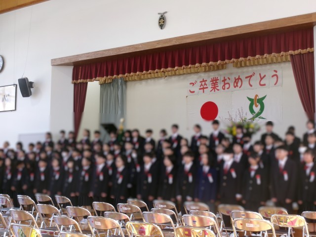 317日(火)、春の訪れを感じさせる穏やかな日差しに包まれ、令和7年度卒業証書授与式を挙行いたしました。中学校の制服に身を包み、緊張感の中にも自信に満ちた表情で入場する卒業生の姿は、大変凛々しく、この6年間での大きな成長を感じさせるものでした。 式のクライマックスとなった、卒業生による「呼びかけ」と合唱「きずな」は、一人ひとりの思いが重なり合い、参列した全員の胸に深く迫る素晴らしい響きとなりました。また、全校児童で歌った最後の校歌は、体育館いっぱいに美しいハーモニーを奏で、学校全体で卒業生の門出を祝う温かな一体感に包まれました。6年生のみなさん、ご卒業本当におめでとうございます。皆さんの新しいステージでの活躍を、職員一同心より応援しています。卒業証書授与式に続き、離任式では、お世話になった先生方の紹介があると、子どもたちからは驚きの声が上がり、中には大粒の涙を流して別れを惜しむ姿も見られました。最後には、全校児童で感謝の気持ちを込めて校歌を合唱。その歌声は、転退職する職員一人ひとりの心の奥まで響き渡り、本校で過ごしたかけがえのない日々を改めて感じる式となりました。