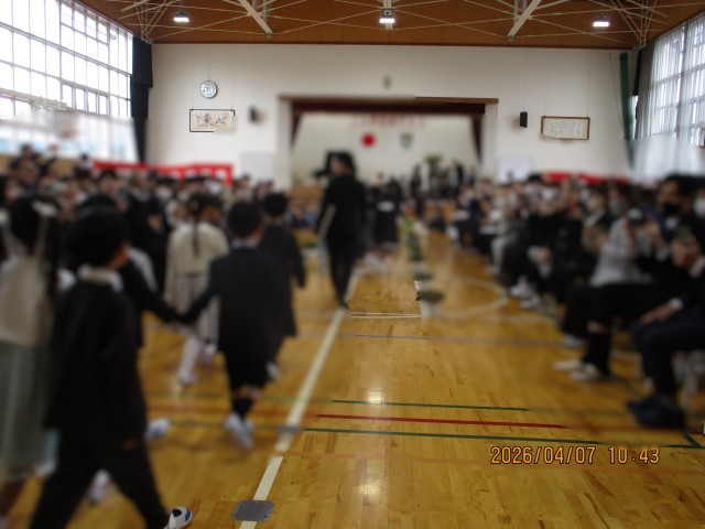 校庭の桜が、まるで子どもたちの門出を祝うかのように美しく咲きほこる中、入学式及び1学期始業式を挙行いたしました。大きなランドセルを背負い、期待と少しの緊張を胸に校門をくぐった新入生86名。そのキラキラとした瞳からは、これから始まる学校生活への意気込みが伝わってきました。全校児童を代表して6年生が1年生を温かく迎え入れ、本日より全校児童515名での令和8年度が力強くスタートいたしました。進級した在校生たちも、新しい教室、新しい教科書を前に、気持ちを新たにしている様子が伺えました。私たち教職員一同、この子どもたちのやる気と可能性を大切に育み、「学校が楽しい」「明日もまた来たい」と思える教育活動に邁進して参ります。