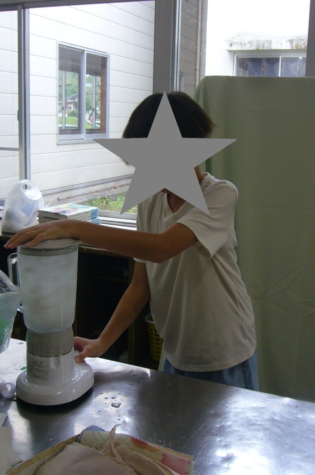 紙すきは牛乳パックを使い、ミキサーで攪拌したものを枠に流し込み、重しをして水をきり乾かして紙を作ります。