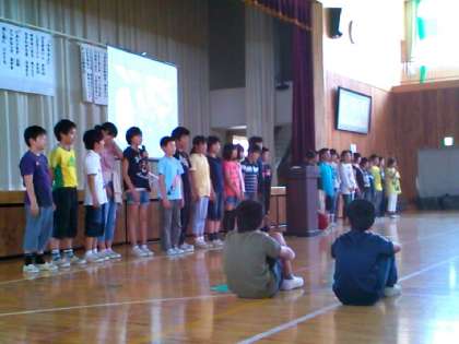 楽しい思い出にもこれで一区切りをつけて、さあ次の大きな目標「最後の音楽会」に向かって、ということで、全校合唱「つばさをください」の6学年バージョンをお聴きいただきました。聴いていただいた歌声が、見ていただいた姿が、どんなふうに高まって、音楽会での学年でのステージになるのか、ご期待ください!!