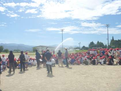 9月1日は防災の日。学校でもこの日に合わせて避難訓練を行いました。天気のよい暑い日でしたが、みんな真剣な面持ちで訓練に臨み、校長先生や消防団のみなさんのお話をしっかりと聞くことができました。さすが北小のみんなです。