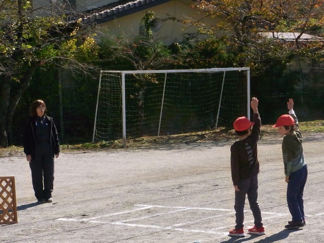 秋の校庭 響く注意喚起