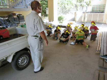 そこで、防災倉庫と、体育館にある地震対策を一緒に見学しました。