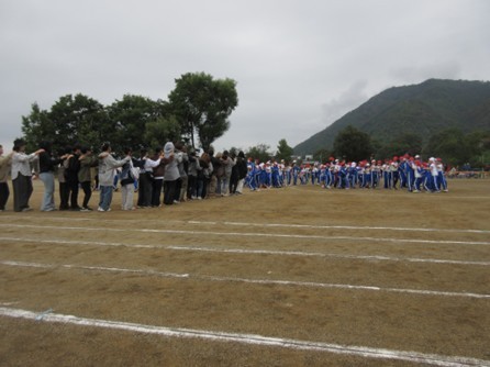 時折小雨が降る中、運動会が行われました。保護者の皆様、地域の皆様の声援を受けながら、子どもたちはひとつひとつの競技、表現を楽しむことができました。また、練習以上の力を発揮する姿が随所に見られました。全校種目では、保護者や地域の方にもご協力いただき大変盛り上がりました。ありがとうございました。