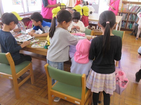 上川手こども園の年中さん、年少さんが遠足に来ました。お天気もよく、こども園のみなさんは校庭で1年生と元気に遊んだり、お弁当を食べたりしました。学校の図書館にも寄ってもらいました。これからもたくさん遊びにきてくださいね。