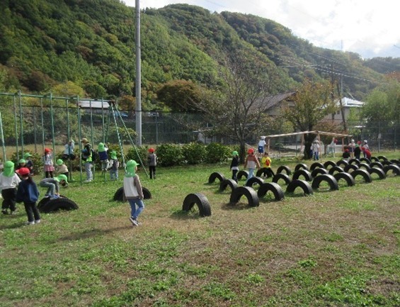 アルプスこども園の年長さんが、おさんぽに来てくれました。校庭で1・2年生と合流し、鬼ごっこや遊具を使って楽しく遊びました。もうすぐ小学生になる園児たちとの温かい交流は、みんなにとってよい経験となりました。