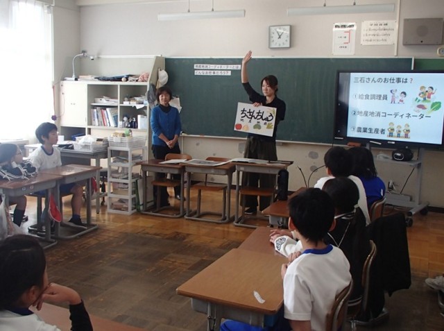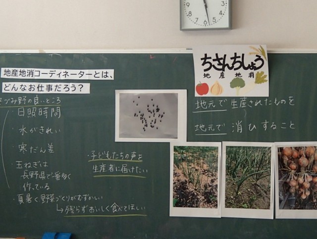 4年生以上を対象に、栄養教諭の吉田先生と地産地消コーディネーターの三石さんによる授業「感謝して食べよう~安曇野の食材を知ろう~」が行われました。児童たちは、安曇野の豊かな食材について学び、地産地消を進めるために自分たちができることを真剣に考えました。そして、食材への感謝の気持ちとともに、今後は生産者や給食センターの方々へ感想を伝えていきたいと考えています。