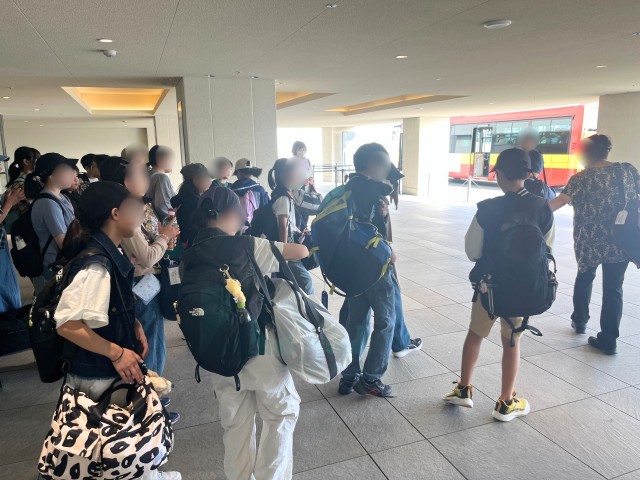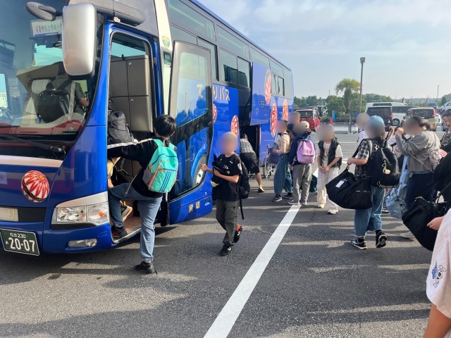 今、バス内でチケットとお昼代を受け取り、ニコニコです。
