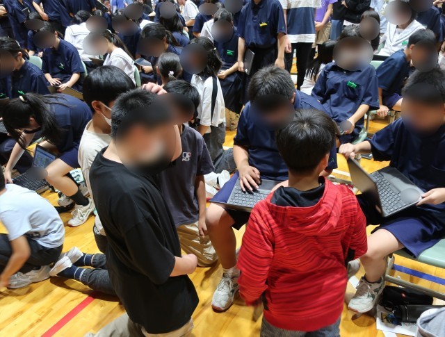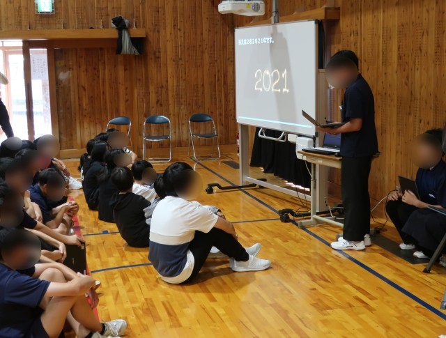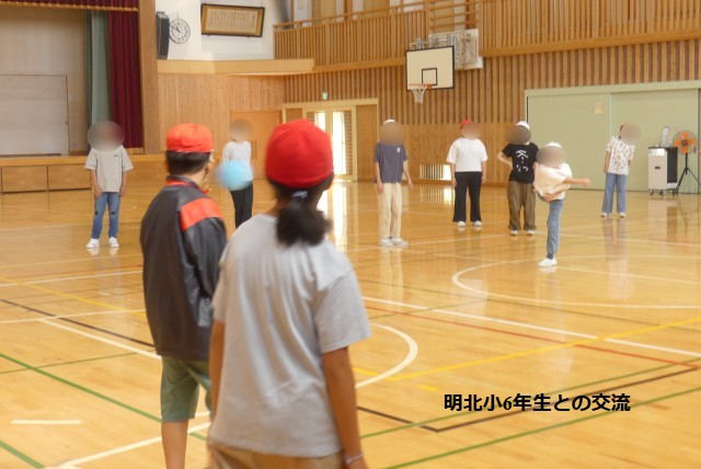 途中、明北小の6年生と明南小の体育館で交流する時間もありました。