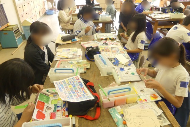 図工の時間に、子どもたちは様々な道具に触れ、扱い方を覚えていきます。