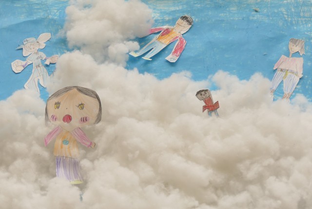 そして昨日、自分たちの絵を描いてくじらぐもに貼り付けました。