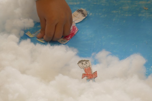 くじらぐもの体には綿をつけました。