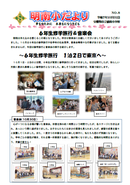 10月31日(金)に明南小だよりNO.8を配付しました。