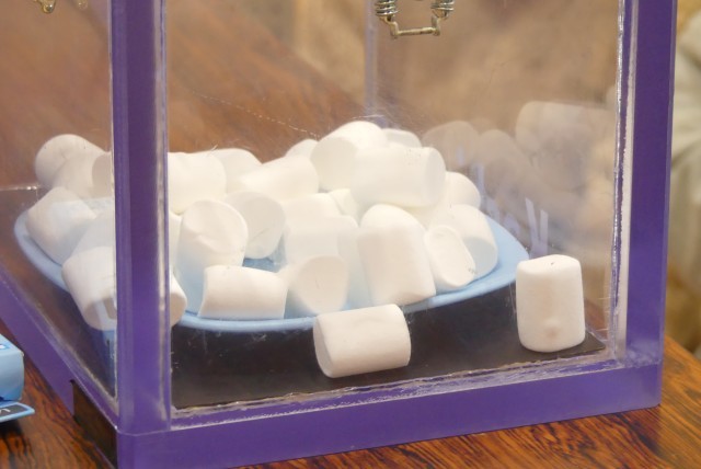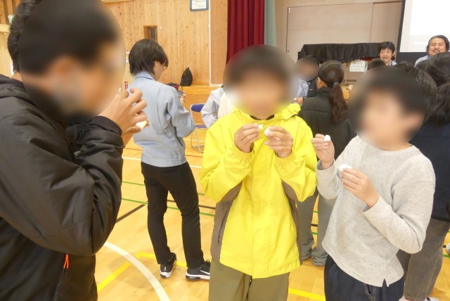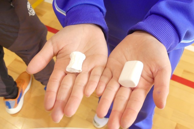 小さく潰れたマシュマロと、通常のものを1人1つずついただき、感触や匂い、味を確かめました。