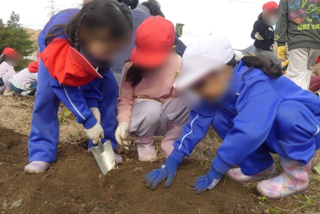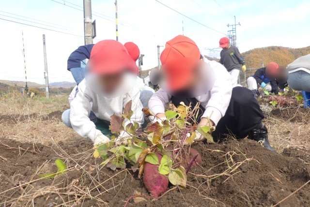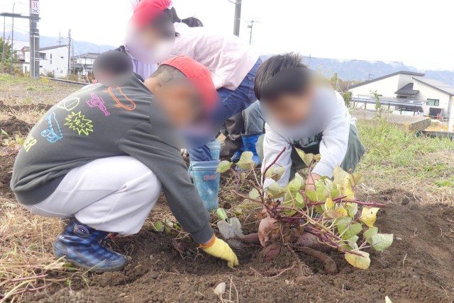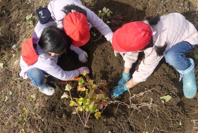 1年生は昨日、畑に植えたさつまいもを収穫しました。