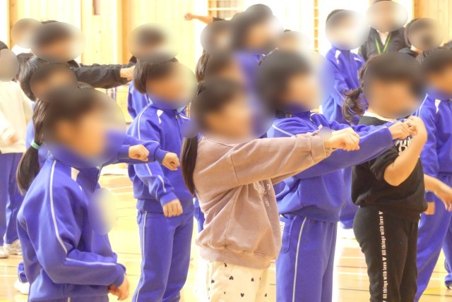 今日は明北小の4・5年生と、明科中の中学生も一緒にレッスンをしました。