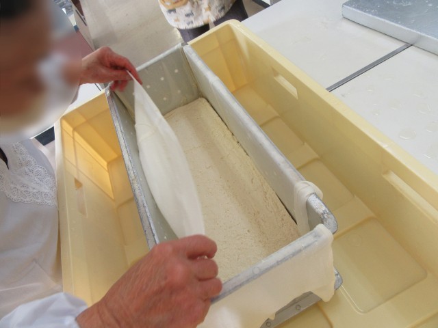 大豆をあらかじめ水につけておくことからはじまり、お豆腐を作るには、たくさんの工程があることが分かりました。