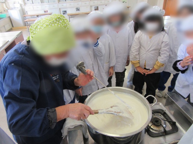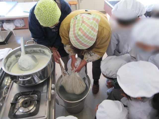 先週のことになりますが、金曜日に2年生が生活科の学習で「豆腐づくり」をしました。