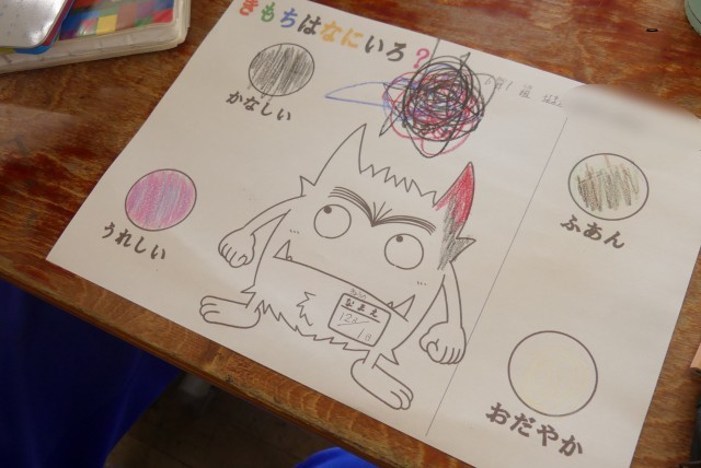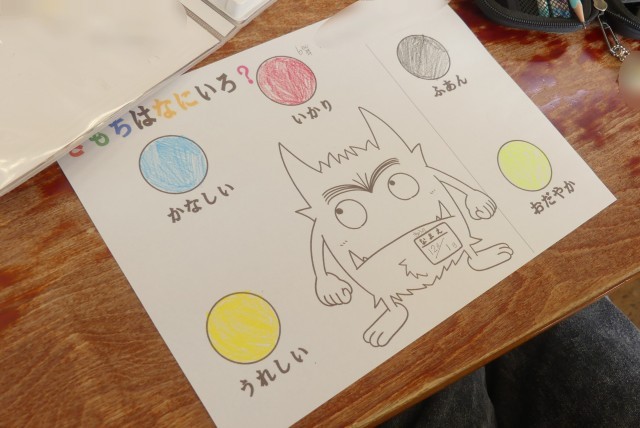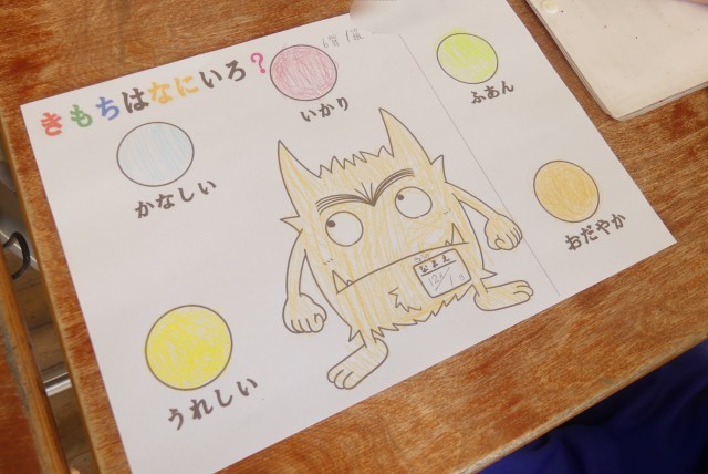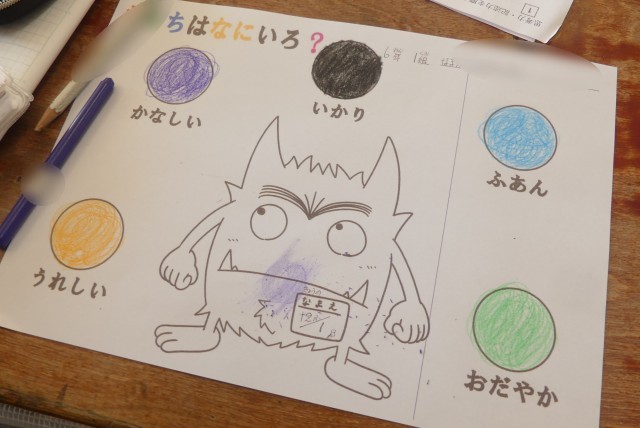 また、用紙の真ん中にいるモンスターを、今日の自分の気持ちの色で塗りました。