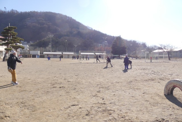 校庭は、足跡を残したままカチコチに固まるほどの寒さです。