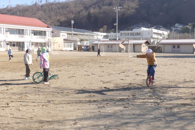 サッカーをしたり、大谷グローブで野球をしたり、一輪車や鬼ごっこをしたりと、元気いっぱいに遊んでいます。