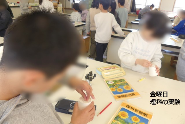「体験を通して学ぶ」といえば、3年生は、連休前の金曜日に理科で「糸電話」の実験をしました。