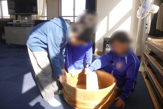 今日3年生は、社会科の学習で「昔のくらし体験」をしました。