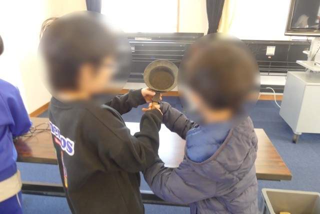 特に、重い鉄製の鍋に炭を入れて使う「炭火アイロン」や「こて」は、「アイロン」だと分からなかったようで、今の形や使い方との違いに驚いていました。