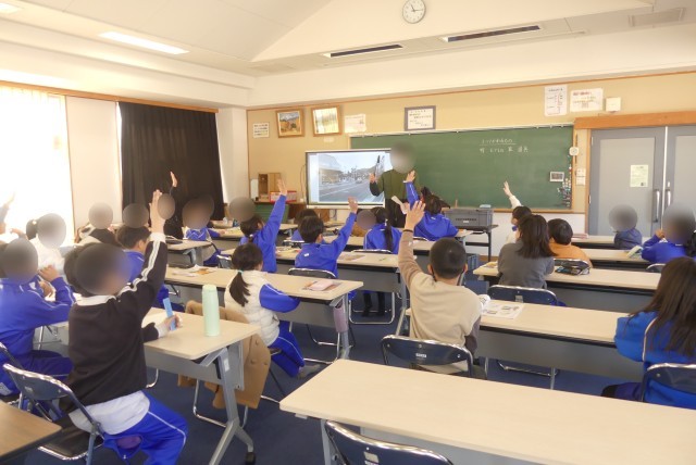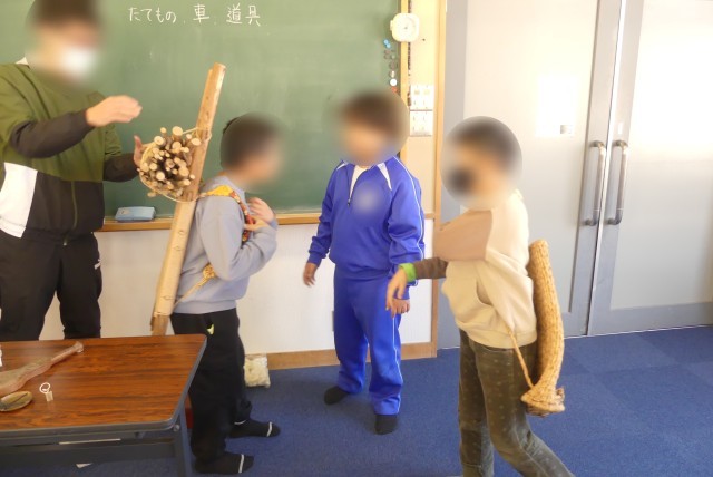 担任の先生が道具を手に取り「これは何でしょう?」とクイズを出題。
