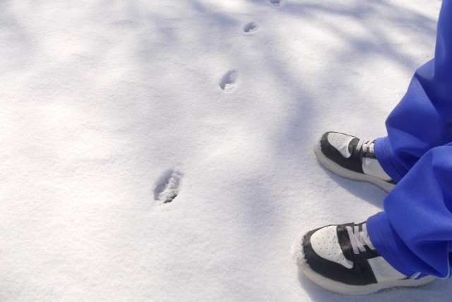 さらさらの雪を触ったり、雪の上に絵を描いたり、足跡をつけたり…