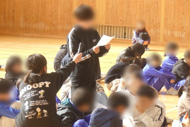 みんなの前に立った6年生の役員が、原稿を見ずに堂々と語る姿が印象的でした。