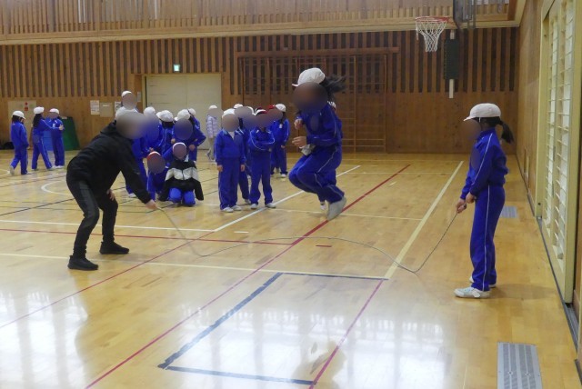 子どもたちによると、1年生の時は短なわ(普通のなわとび)が中心だったとのこと。
