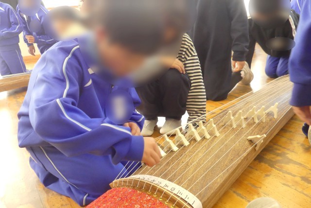 それでも子どもたちは、箏の繊細な音と大きな楽器を前に、わくわくと目を輝かせながら練習していました。