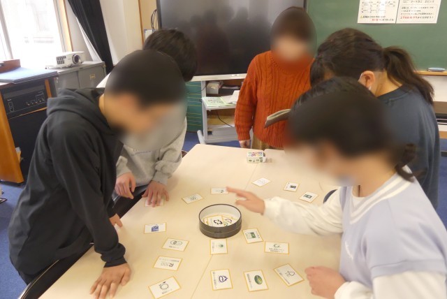お買い物の前に、まずは「環境マークかるた」で学習。