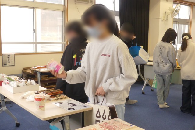 視聴覚室では、本物そっくりの商品が並ぶ「スーパー明南」が開店!