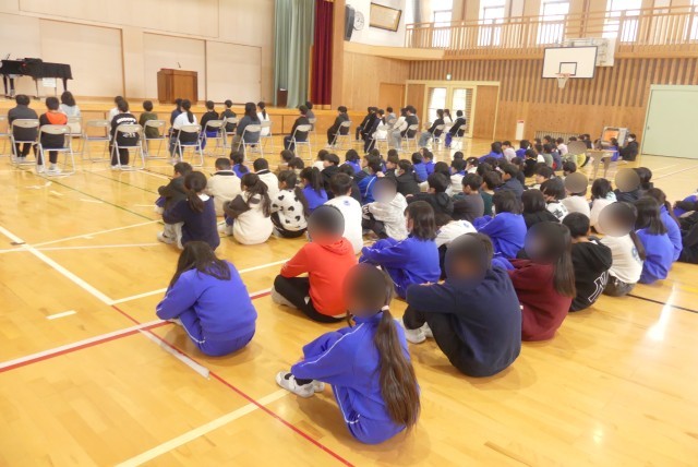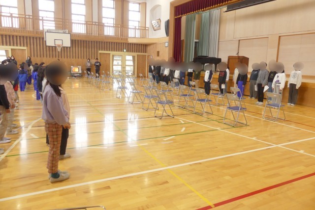 今日の「ぽかぽかタイム」は、全校児童が体育館に集まり、卒業式の練習を行いました。
