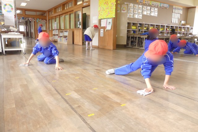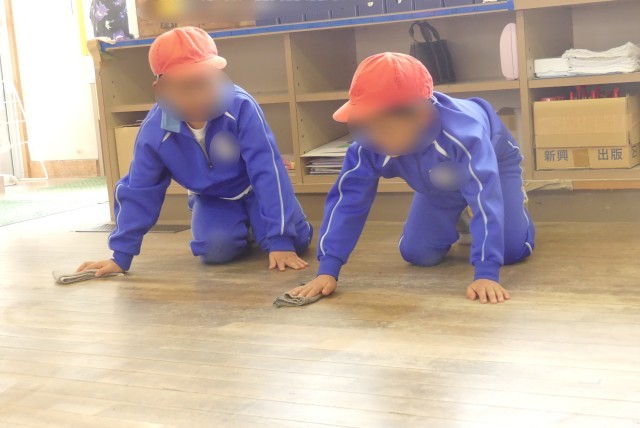 縦割り清掃でお兄さん・お姉さんから教えてもらっていたのが、今ではすっかりお掃除上手に✨