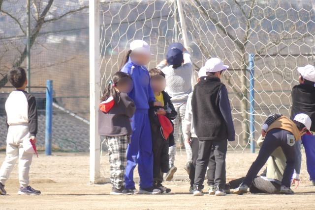 撮影していると、1年生と5年生が一緒に遊んでいることに気付きました。