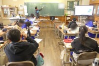 放送室と各教室をリモートでつなぎ、終業式を行いました。