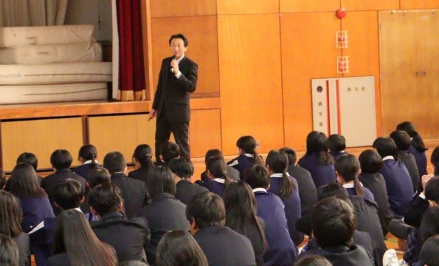 校長先生は、この物語が、インターネットの発達により情報が複雑に錯綜する現代において、別世界のお話とは言い切れないのではないかと語りかけました。その上で、日頃、身の回りにある「喜び」や「悲しみ」を感じることのできる感性や知識を身につけ、磨いていって欲しいと話をしました。