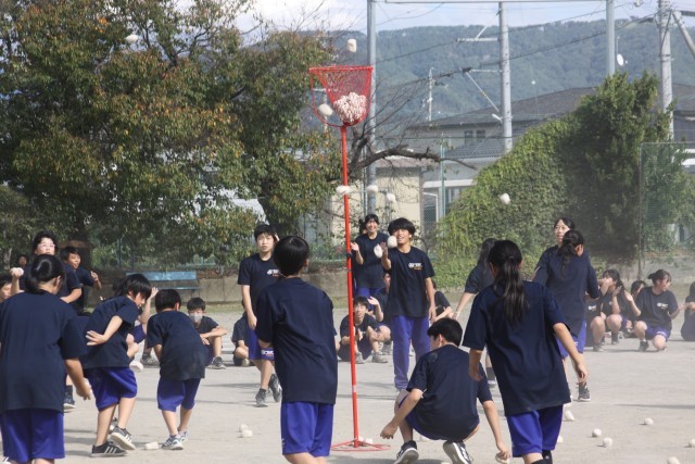 運動会最初の種目は「玉入れ」。中学校の玉入れは一味違います。