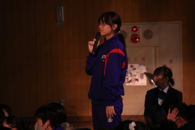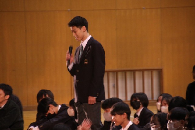 3分間のバトルタイム(発表)後には、2分間のディスカッションタイムが設定され、全学年から多くの質問が出されました。活発なやりとりの中にも笑いあり温かな雰囲気あり。