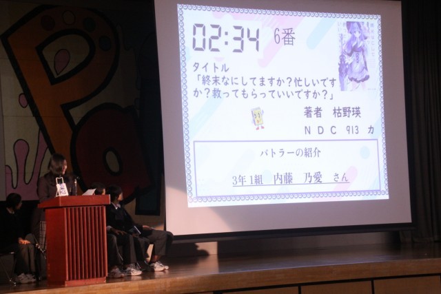 3連休明け11月4日(火)の6校時、生徒会図書委員会の企画運営により「ミニ・ビブリオバトル」が開催されました。