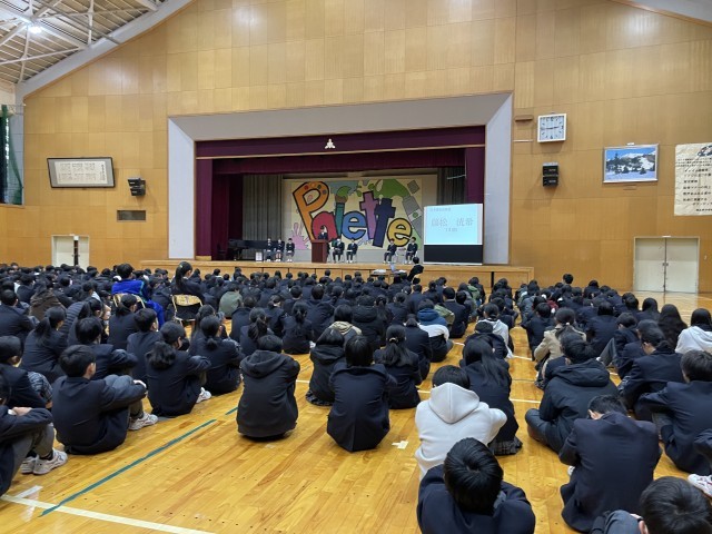 18日(火)の5・6校時、令和8年度生徒会役員立会演説会・投開票が行われました。生徒会長、男子副会長、女子副会長候補者が壇上に上がり、東中の良さ、更に伸ばしたいところ、課題として捉えていること等を具体的に述べ、公約を掲げて今後の展望を語りました。