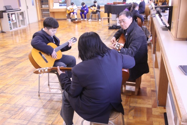 水曜日の帰り学活後、志願生徒がそれぞれの会場に集まり、自分の好きなことに夢中になって取り組みます。そして、地域の名人から専門的な指導をいただき、メキメキと腕を上げています。