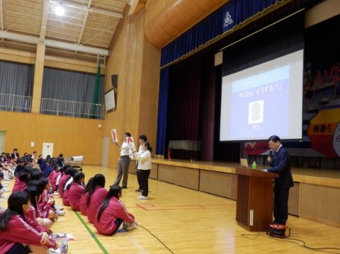 人権講演会では、ワークショップを通して、人の意識の中には無意識のうちに差別的な思考ができてしまうことや、相手を思いやるためには言葉の使い方が大切であることなどを教えていただきました。また、人権意識を高めるためには少数の人の立場について考えることや、同調行動がいじめの要因にもなるし、解決の手がかりともなることなど、私たちの意識を変えるヒントもいただくことができました。