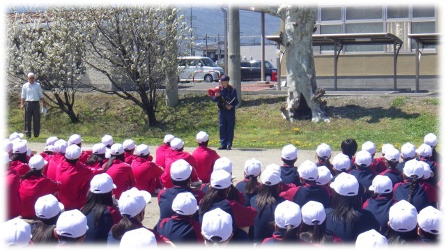 生徒たちは安全に避難するために先生方の指示をしっかりと聞き、素早く避難することができました。避難の様子を見てくださった消防署の方からは、「環境が変わっての初めての訓練でしたが、慌てずしっかりと避難できていました。「おはしも」を守って、自分だけでなく周りの人たちの命も守るように心がけて下さい」というお話がありました。また、校長先生からは「訓練の自己評価の中で100点と答えた人はそれができるように心がけて、80点と答えた人は100点を取れるように頑張ろうとすることが命を守ることにつながるので意識していってほしい」というお話がありました。