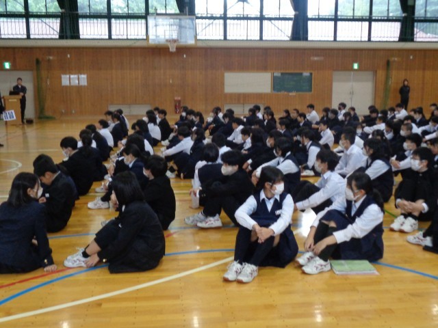 10月22日(水)の朝の時間に、校長講話がありました。今週の10月20日から始まった後期人権月間(~11月21日)に合わせて、人権に関する講話となりました。色鉛筆のクレヨンなどの画材で「肌色」という呼び方が現在では見かけなくなり、「うすだいだい」や「ペールオレンジ」という名称に変更してきたこと、「多目的トイレ」が近年インクルーシブな社会を目指す動きの中で「バリアフリートイレ」や「みんなのトイレ」といった呼び方が推奨されるようになってきたことを、生徒同士の対話の時間を取りながら全ての人が個人として尊重され、互いに認め合い、支え合いながら生きることができるインクルーシブな社会についてお話ししていただきました。今週から始まった後期人権月間で人権感覚を磨き、堀金中学校においても「誰もがここにいていい」と感じられる学校を共につくっていきましょう。